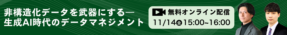 本セミナーでは非構造化データの活用方法に焦点を当て、生成AIの登場によって生じたデータマネジメントのパラダイムシフト、非構造化データを活用するためのデータアーキテクチャとそれを実行/運用するためのポイントをご紹介します。